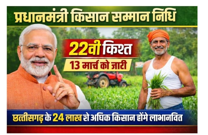 प्रधानमंत्री किसान सम्मान निधि योजना की 22वीं किश्त 13 मार्च को होगी जारी…छत्तीसगढ़ के 24 लाख से अधिक किसान होंगे लाभान्वित